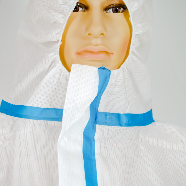 To ensure that the protective clothing is comfortable and conforms to the wearer's body, it features an elastic closing design at the waist and ankle joints. It is a disposable coverall, which means it can be discarded after use, reducing the risk of contamination. The coverall also features a self-adhesive zip flap, which helps to ensure a secure fit and further prevents contamination. Overall, this type of protective clothing is designed to provide effective protection against infectious diseases while also being comfortable and easy to wear.